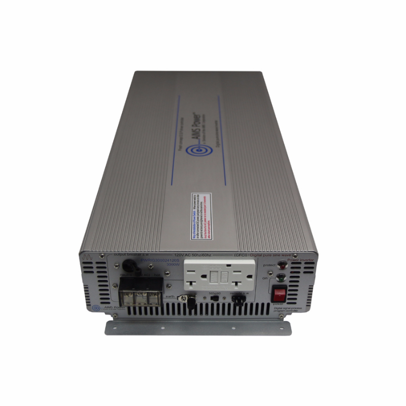 AIMS Power is proud to bring you this new 3000 Watt Pure Sine Power Inverter, designed for harsh environments, which has been completely overhauled and now boasts a dual GFCI outlet and is FCC certified. This product also includes a thermally controlled fan, allowing for increased efficiency and less noise.