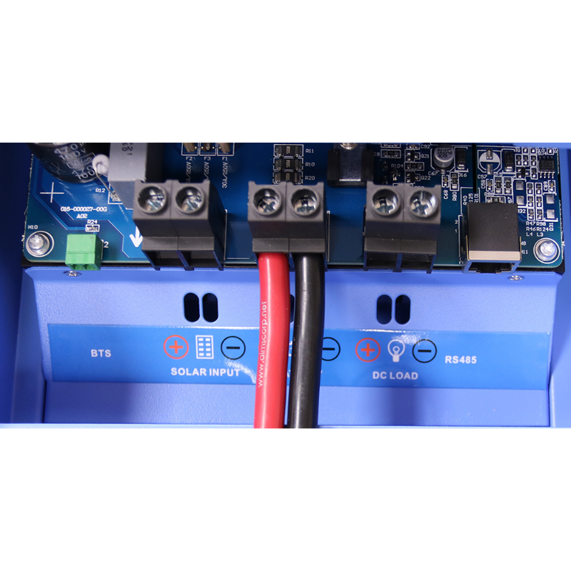 - MPPT technology: Maximum Power Point Tracking produces maximum available power from PV array to battery bank utilizing peak power of the I-V curve