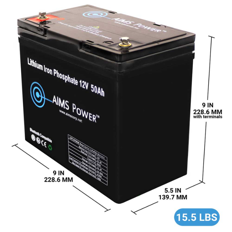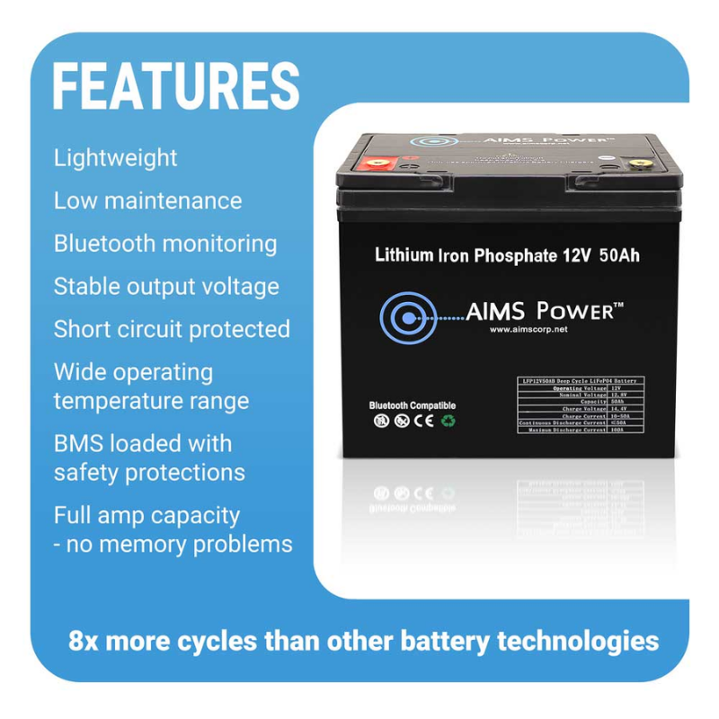 AIMS Power Lithium Battery 12V 50Ah LiFePO4 Lithium Iron Phosphate with Bluetooth Monitoring