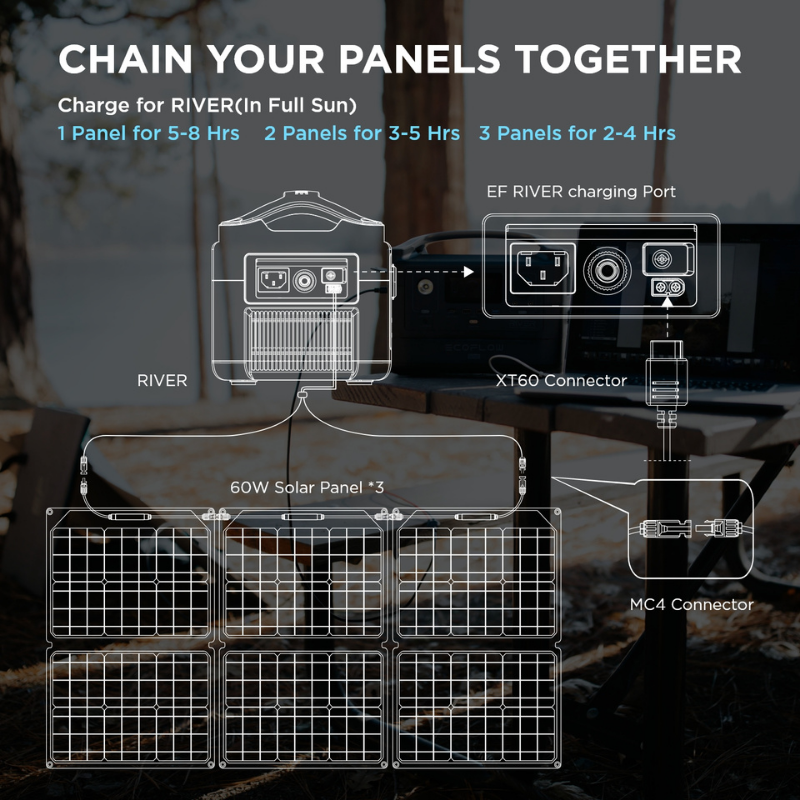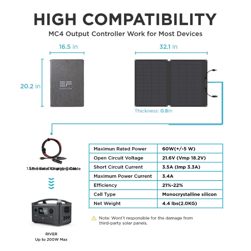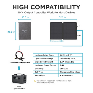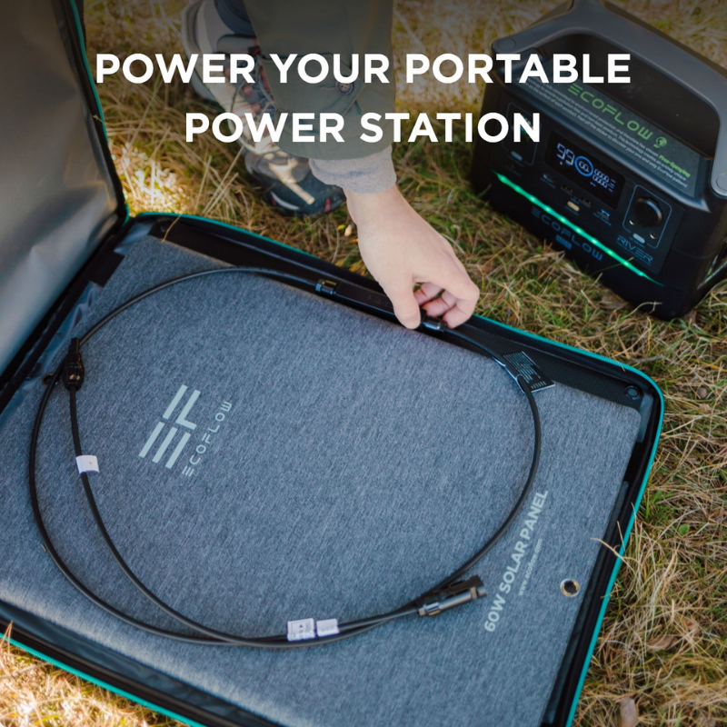 PORTABLE & FOLDABLE The EcoFlow 60W solar panel is portable, foldable, and compact, weighing just 8.8lbs / 4kg. From camping to outdoor activities, unfold the solar panel and start capturing solar power in seconds.