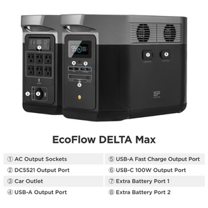 | Extra Battery | Support up to two DELTA Max Smart Extra Battery/Smart Generator |