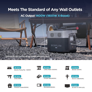 - Power bigger electronics - DELTA mini’s output of 1400W handles 90% of electronics. X-Boost that number to 1800W and suddenly your toaster oven, table saw, and hairdryer become battery-powered.