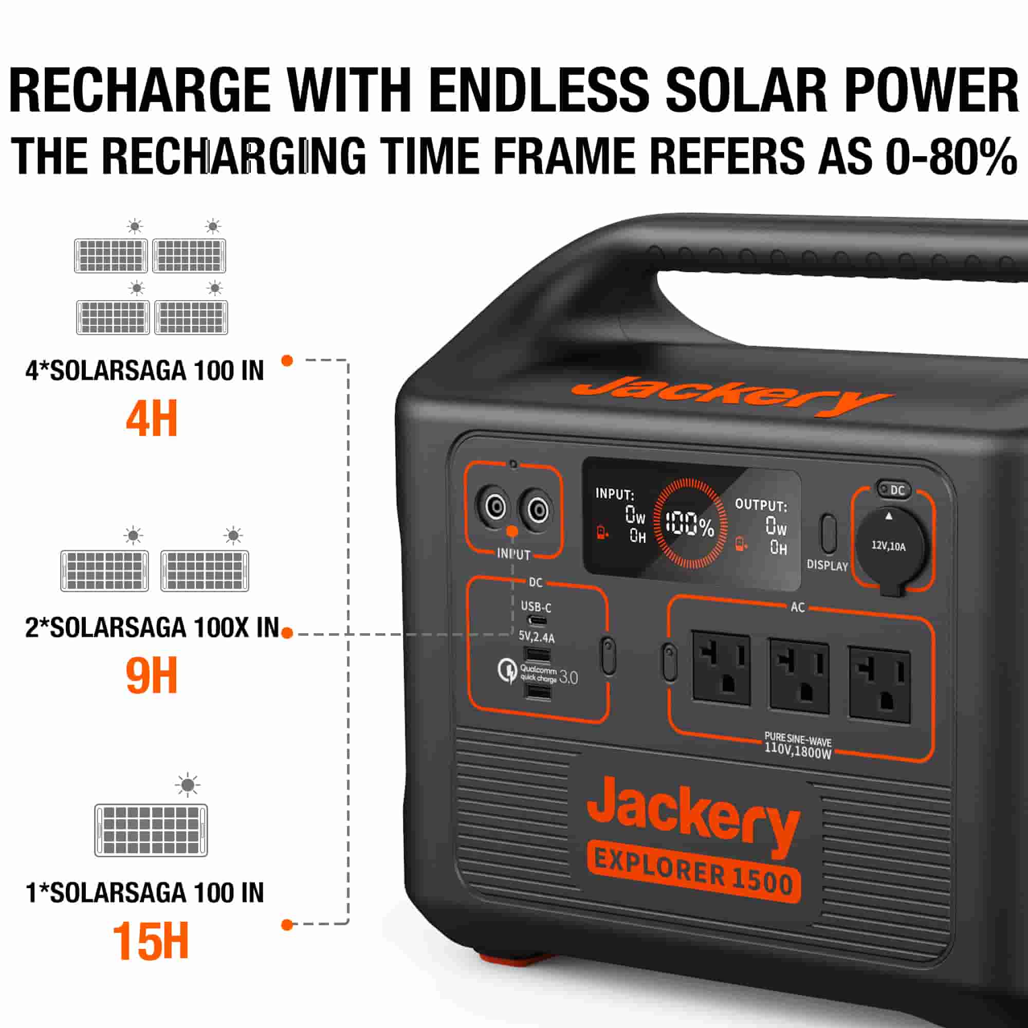 Jackery Solar Generator 1500 (Explorer 1500 + SolarSaga 100W)