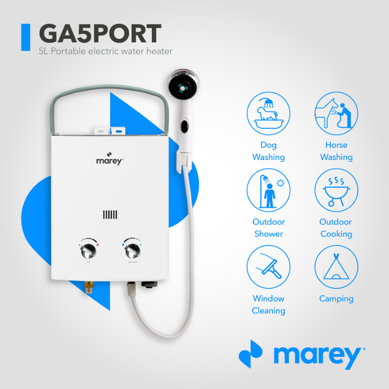 The Marey Gas 5L Portable Tankless Water Heater is perfect for your next family getaway or camping trip! You no longer have to sacrifice the comforts of warm water when enjoying the great outdoors with our Portable 5L, which allows you to bring endless hot water anywhere you desire.