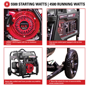 *Generator per PGMA (Portable Generator Manufactures’ Association) standard ANSI/PGMA G300-2015, Safety and Performance of Portable Generators.