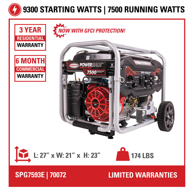 Simpson PowerShot Portable 7500-Watt Generator - SPG7593E