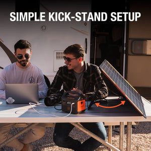 - Easy to Carry & Kickstand Included: Weighing at only 6.6lb, this solar panel is foldable and handy with a TPE rubber handle. The kickstand leans on an angle that makes the solar panel to easily soak energy from the sunlight.