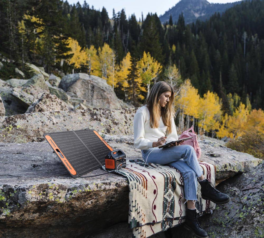 A lightweight solution for on-the-go power from the sun. You can harness the power of the sun and convert it into a lithium power station and keep all your gadgets charged.