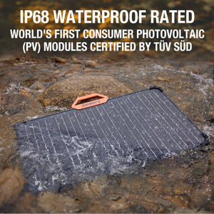 - Dual-Sided Panels Enhanced Solar Efficiency: The upgraded solar panel can generate electricity from both sides. Extra-white glass (92% transmittance rate) used on the back panel helps boost conversion rate. A reflective lined carrying bag is specially designed to reflect extra solar energy.